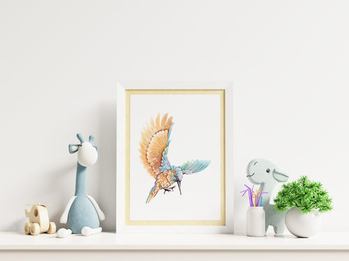 Watercolor Hummingbird Print Bird painting Living Room Wall Decor - Physical Print Without Frame