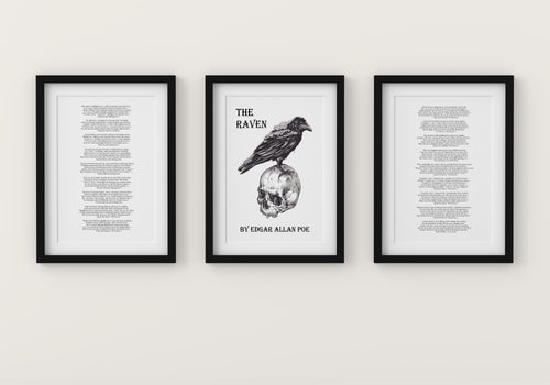 The Raven Set of 3 Edgar Allan Poe Poem Poster Prints - Quoth the Raven “Nevermore.” - Macabre Decor - Literary Wall Art