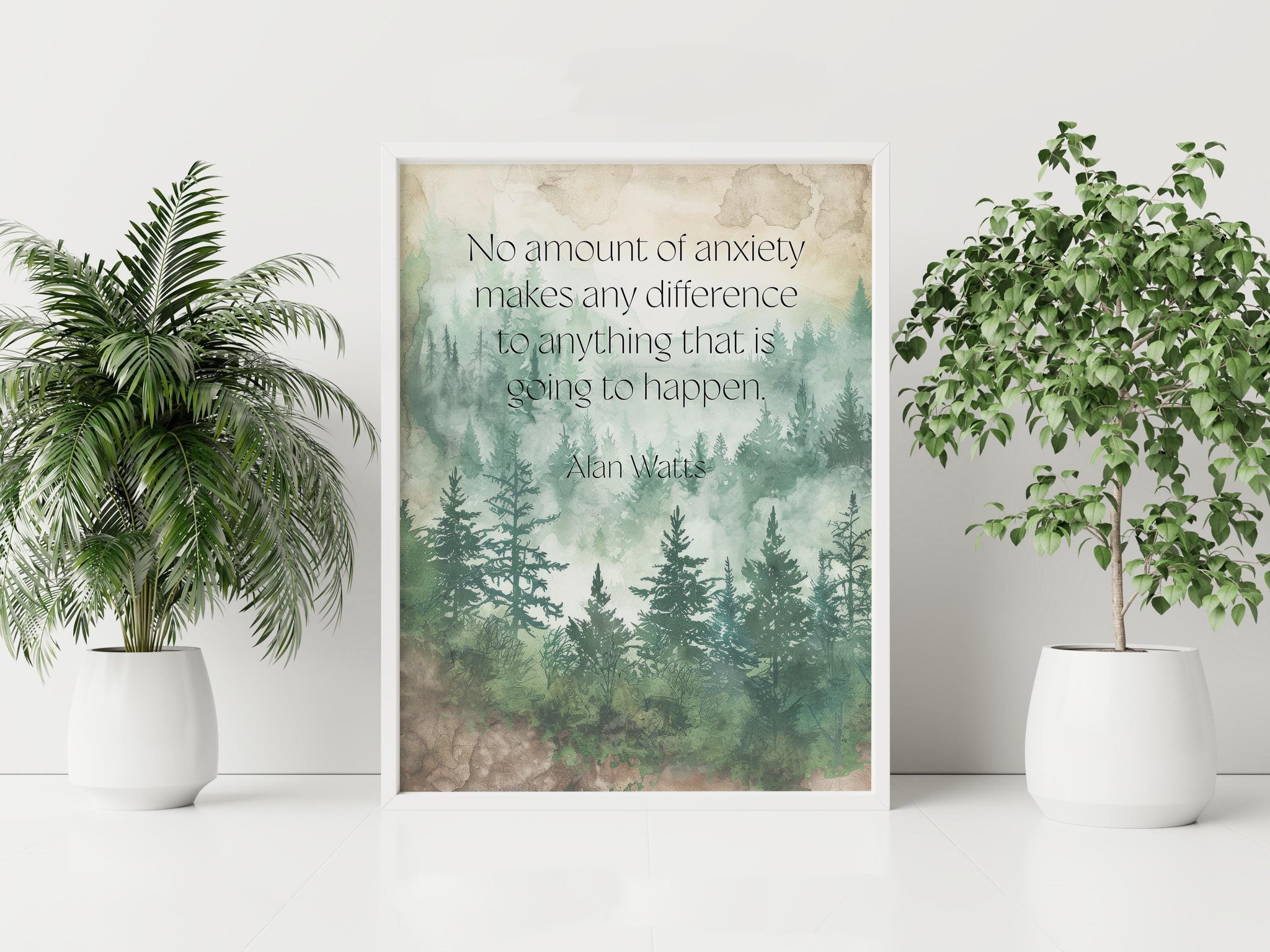 Designed with a serene watercolor forest backdrop, this print blends philosophy and mindfulness, making it a perfect addition to a meditation space, home office, or reading nook. Watts’ words offer a powerful reminder to let go of worry and embrace the present.