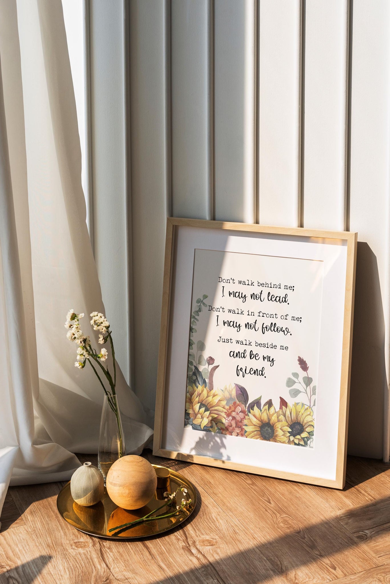 This friendship quote print makes a meaningful piece of wall décor for your living room, bedroom, office, or library. It’s also a heartfelt gift for a best friend, sibling, or loved one, reminding them of the beauty of walking side by side through life’s journey. With its delicate watercolor details and inspiring words, it blends effortlessly with modern, boho, cottagecore, or farmhouse décor.