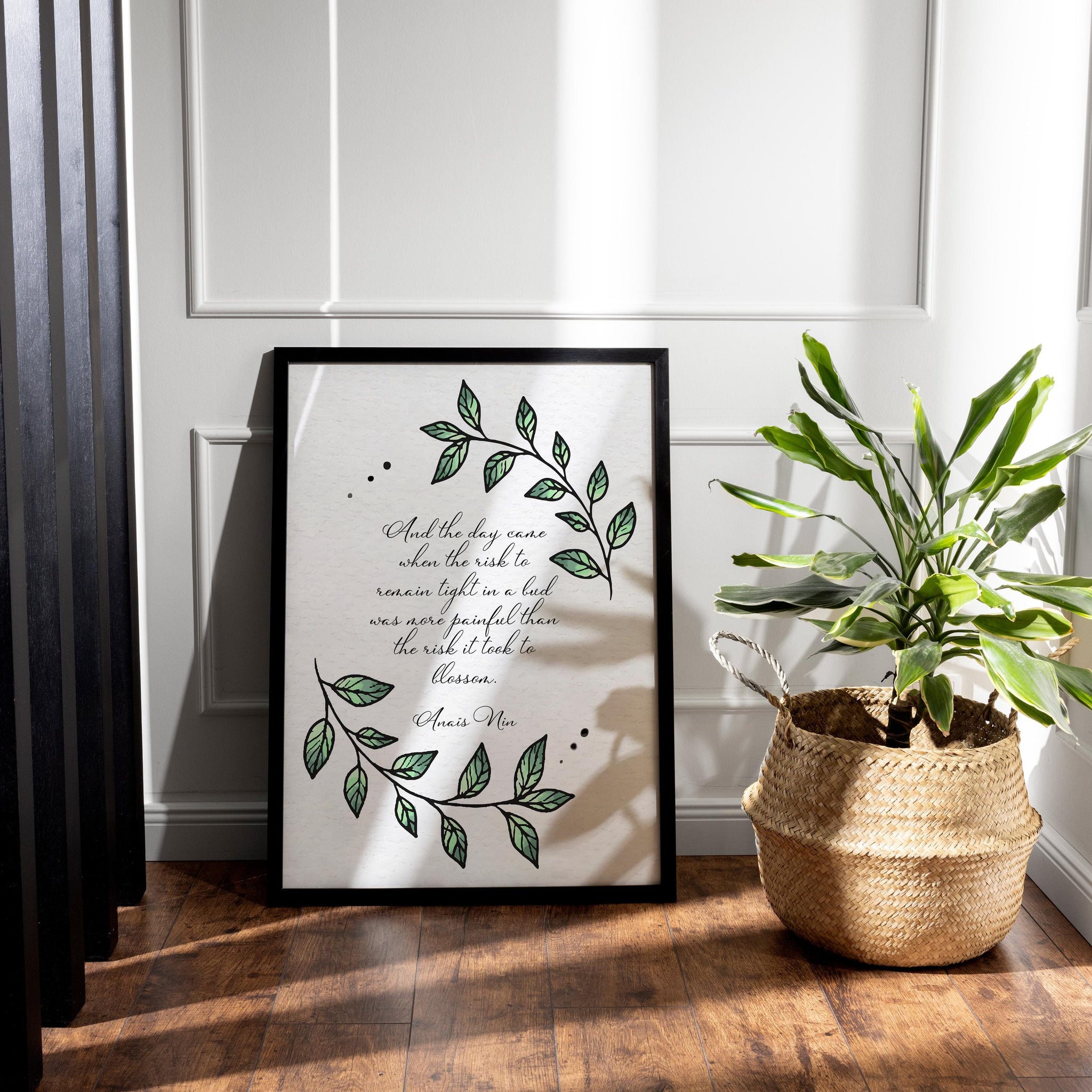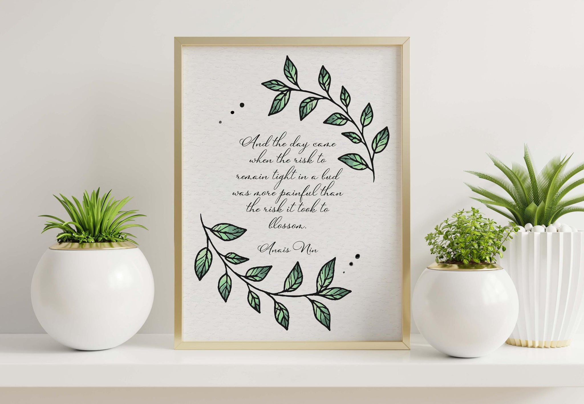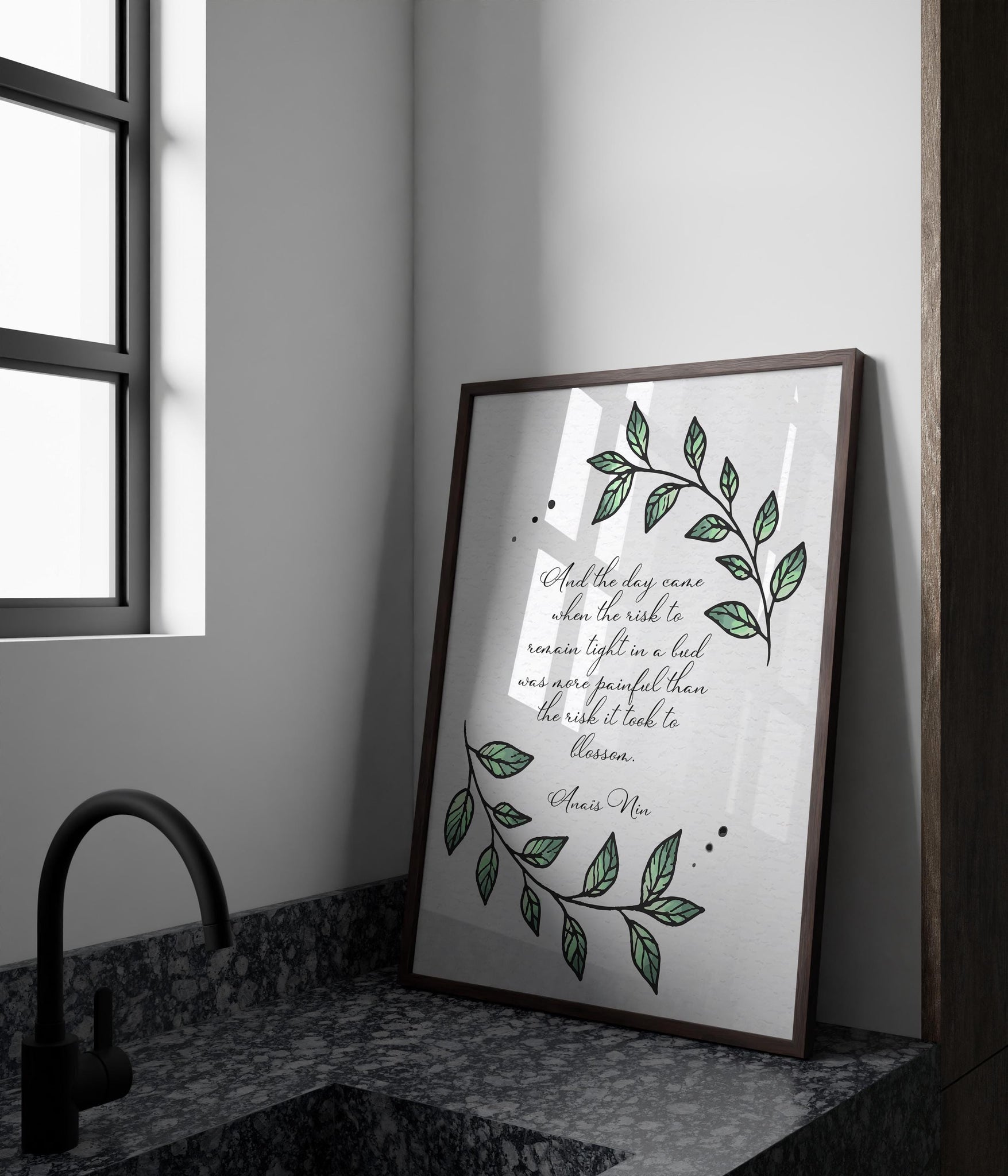 Celebrate growth, courage, and self-transformation with this elegant art print featuring Anaïs Nin’s timeless quote: