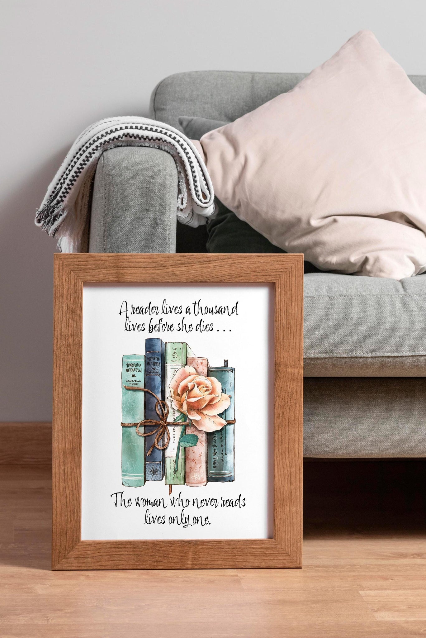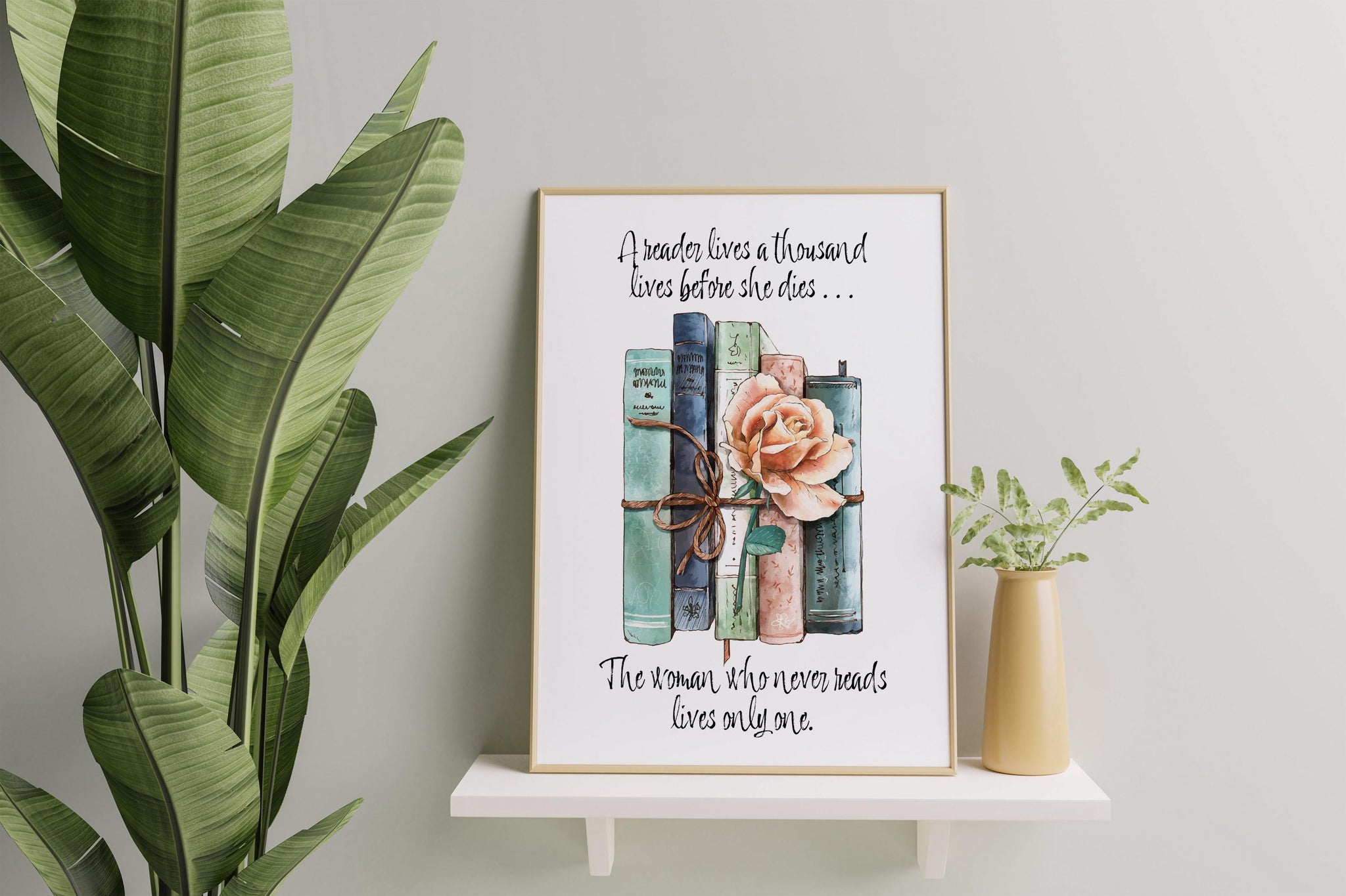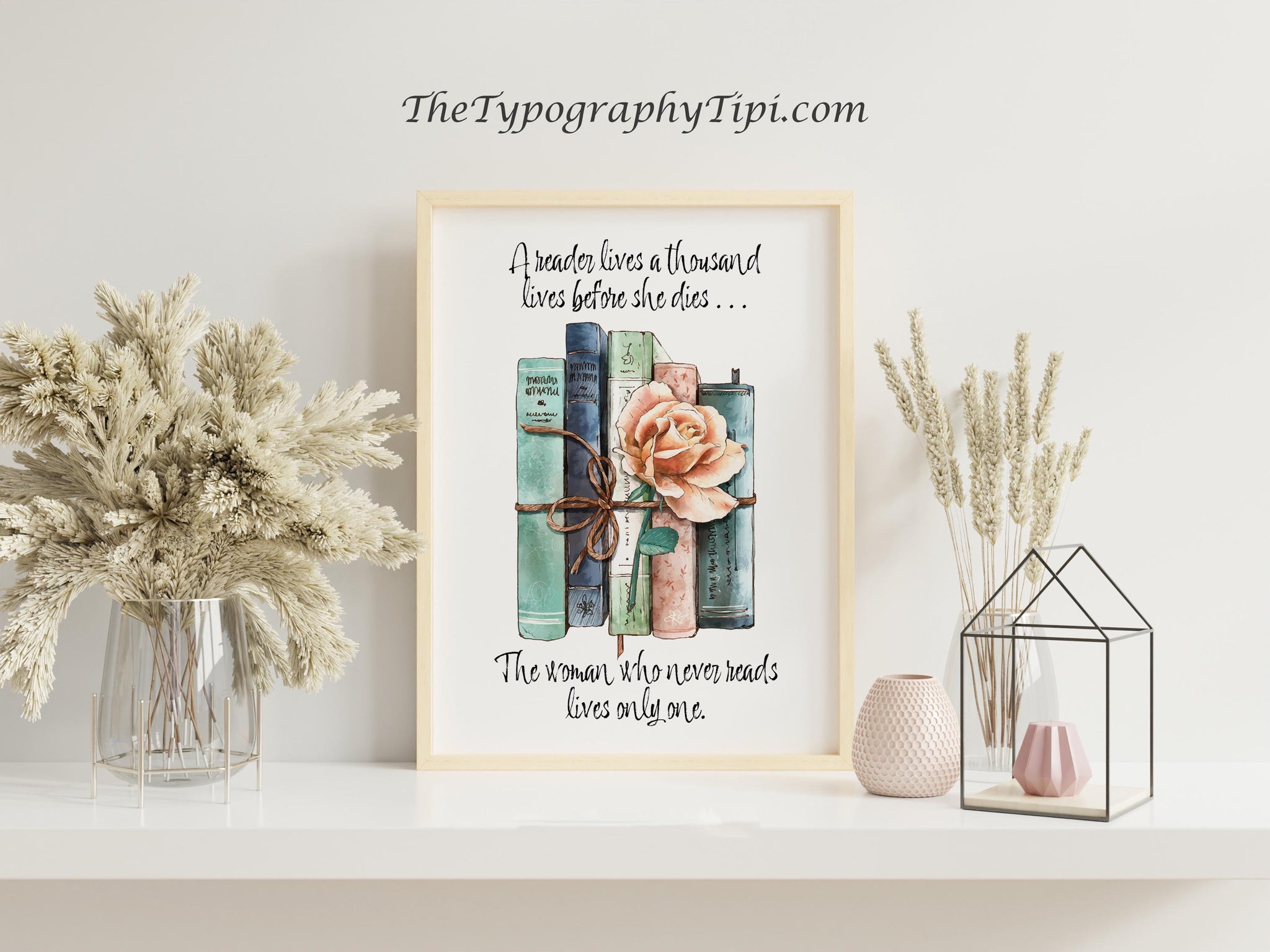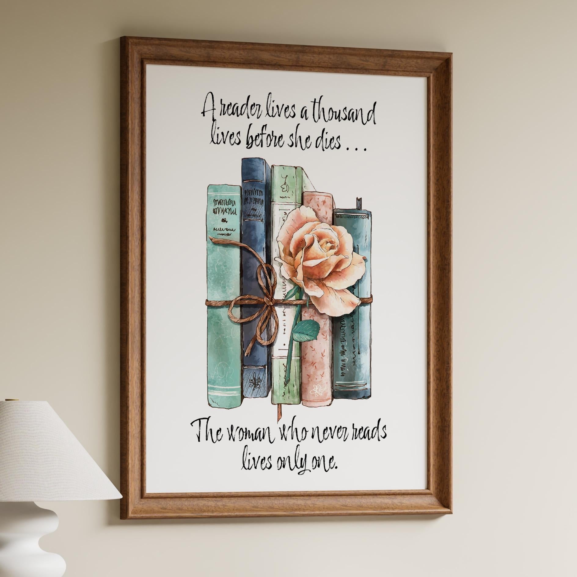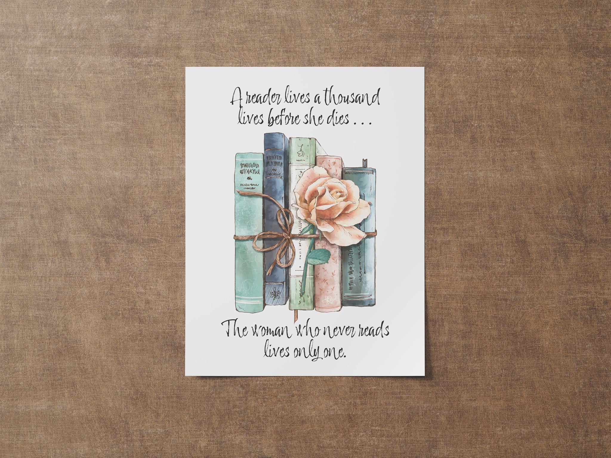 Paired with a stunning watercolor illustration of a vintage book stack and a delicate rose, this high-quality art print is the perfect addition to any reading nook, home library, or cozy space. Whether you're a passionate reader, a writer, or simply love the charm of books, this made-to-order print makes a timeless statement.