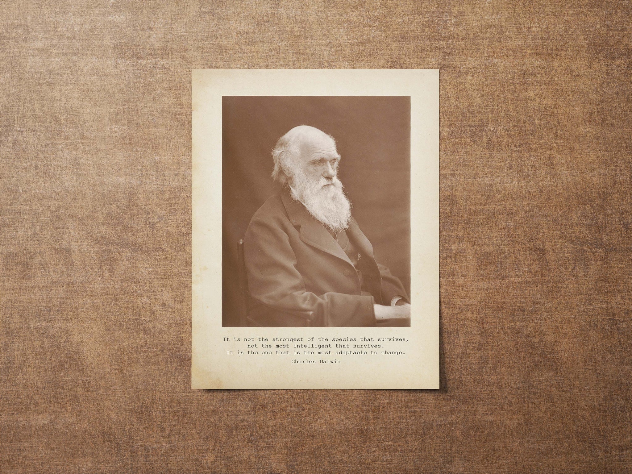A high-quality art print featuring a great quote from Charles Darwin “It is not the strongest of the species that survives, not the most intelligent that survives. It is the one that is the most adaptable to change.”