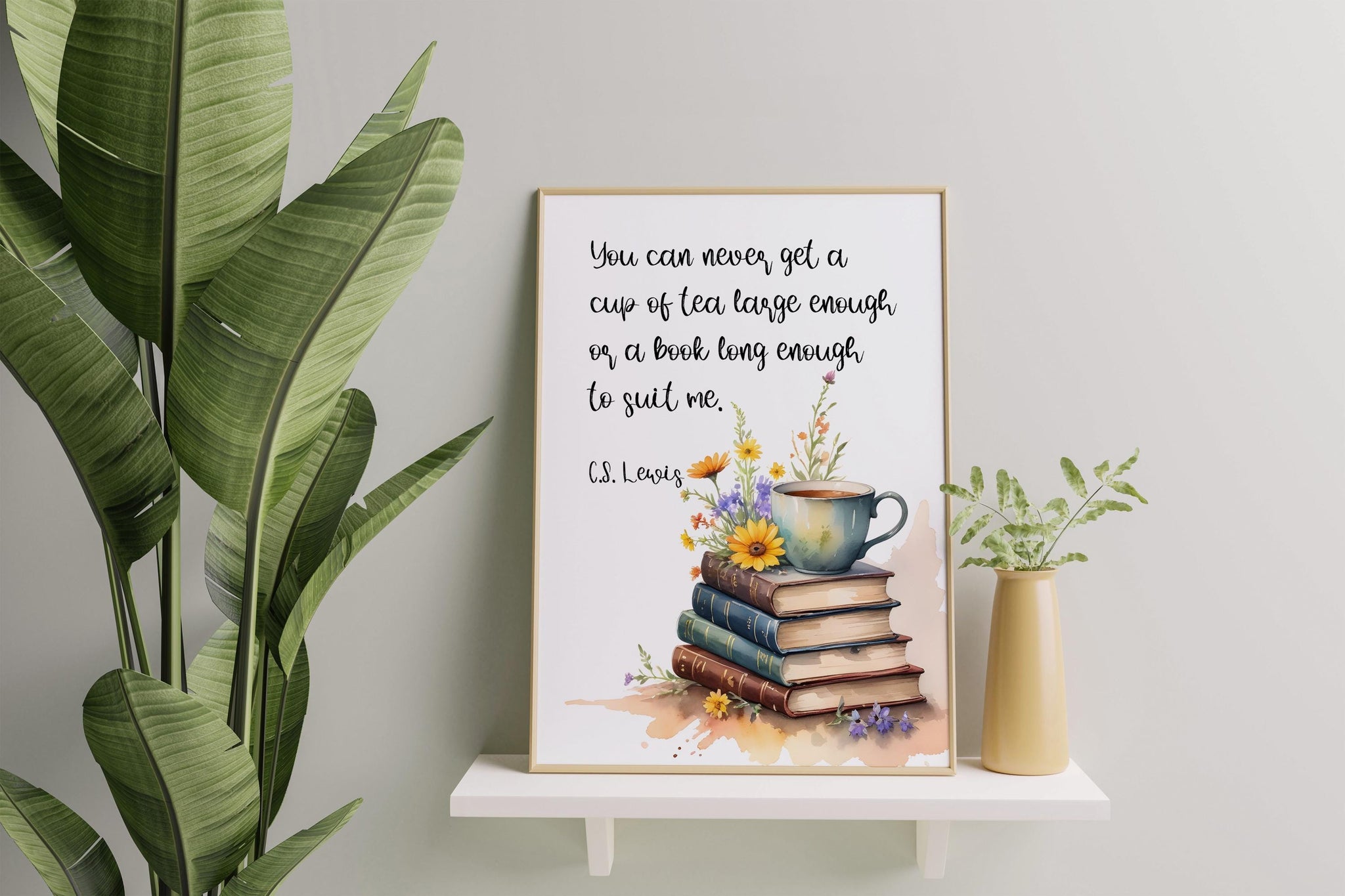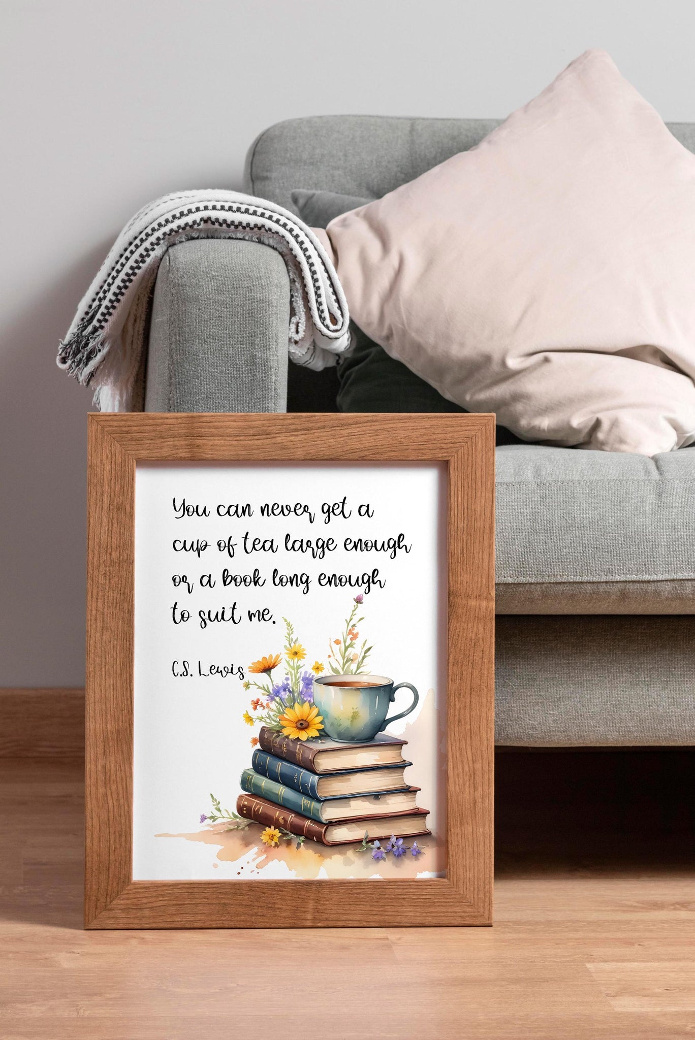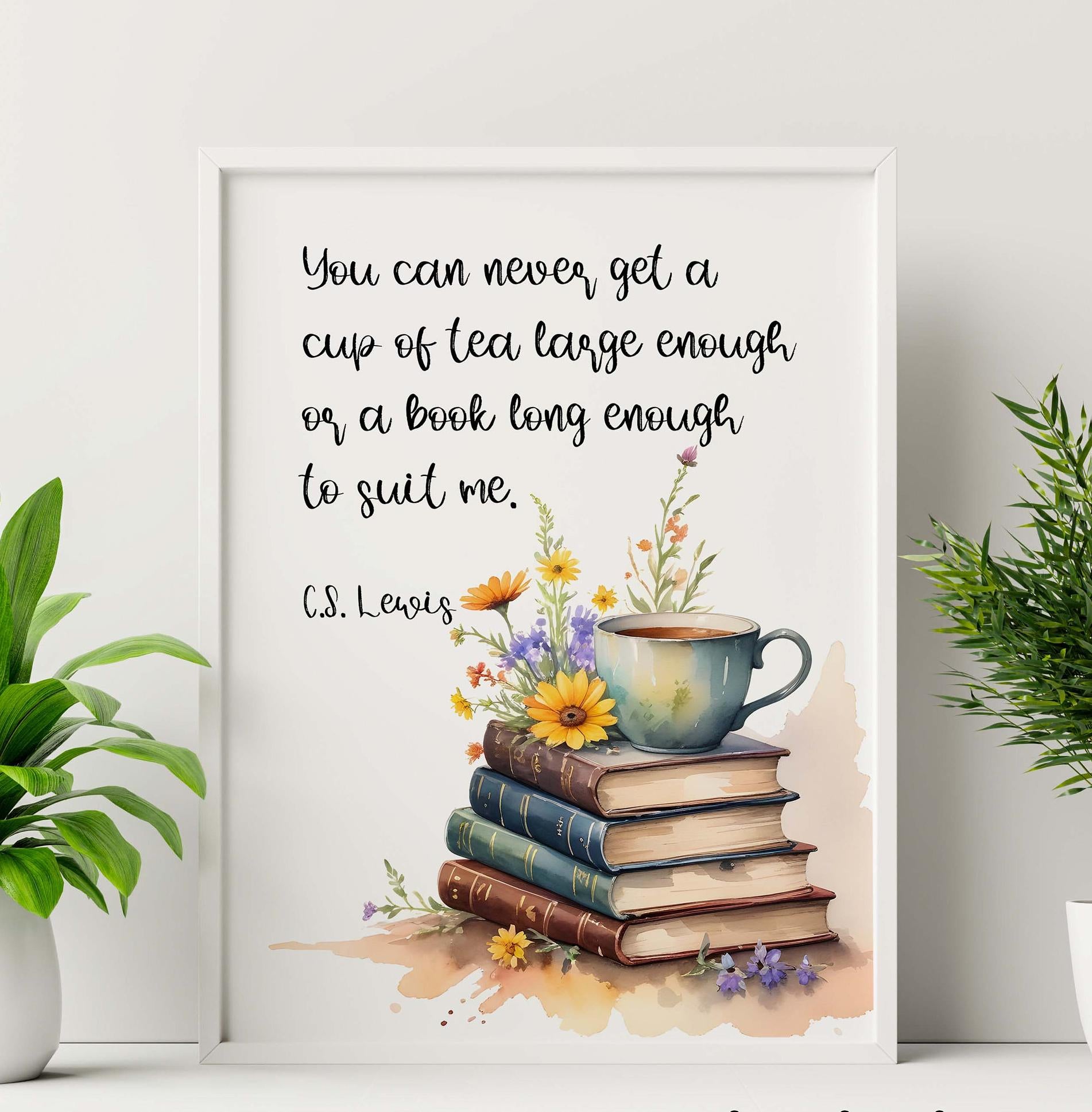 Curl up with a good book and a warm cup of tea with this C.S. Lewis literary quote print—a perfect addition to any book lover’s space. Featuring the beloved quote: