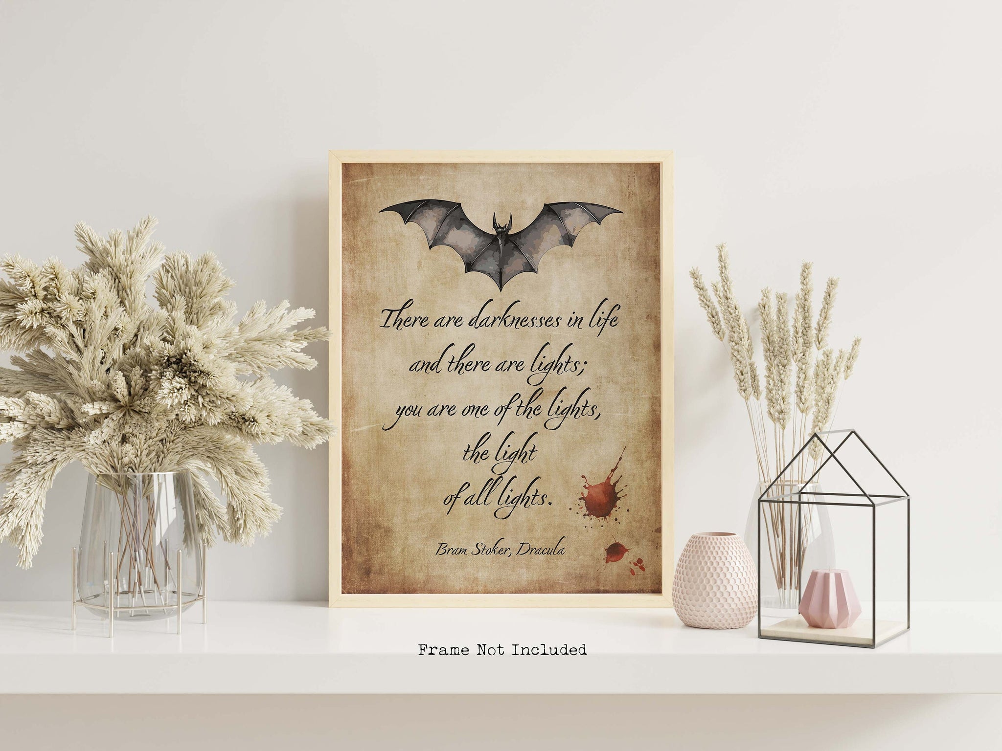 A high-quality art print featuring a quote from Bram Stoker's timeless gothic classic, Dracula: “There are darknesses in life and there are lights; you are one of the lights, the light of all lights.”