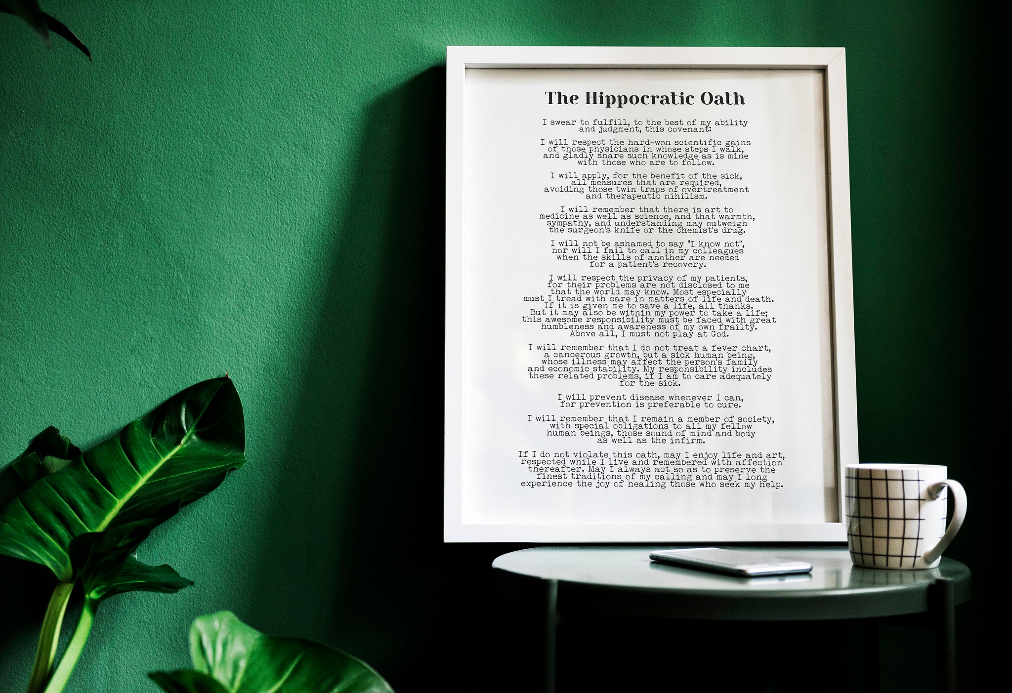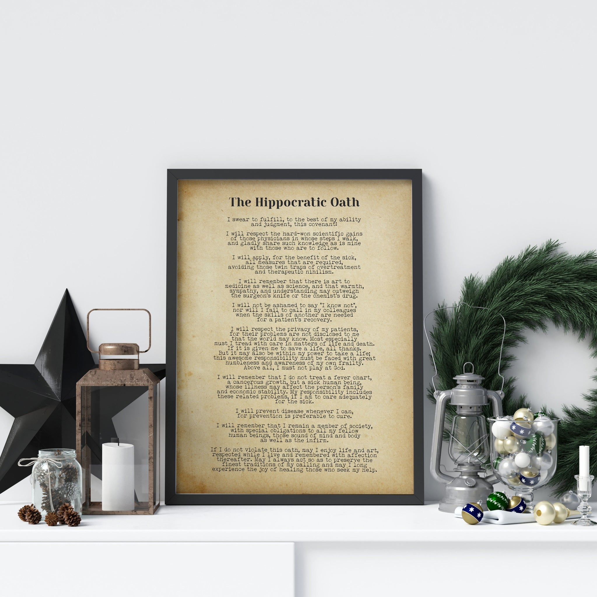 Celebrate the timeless ideals of compassion, integrity, and dedication to healing with this elegant Hippocratic Oath art print. Featuring the full modern text of the oath in a clean, minimalist layout, this piece makes a meaningful and professional addition to any medical office, clinic, or study space.