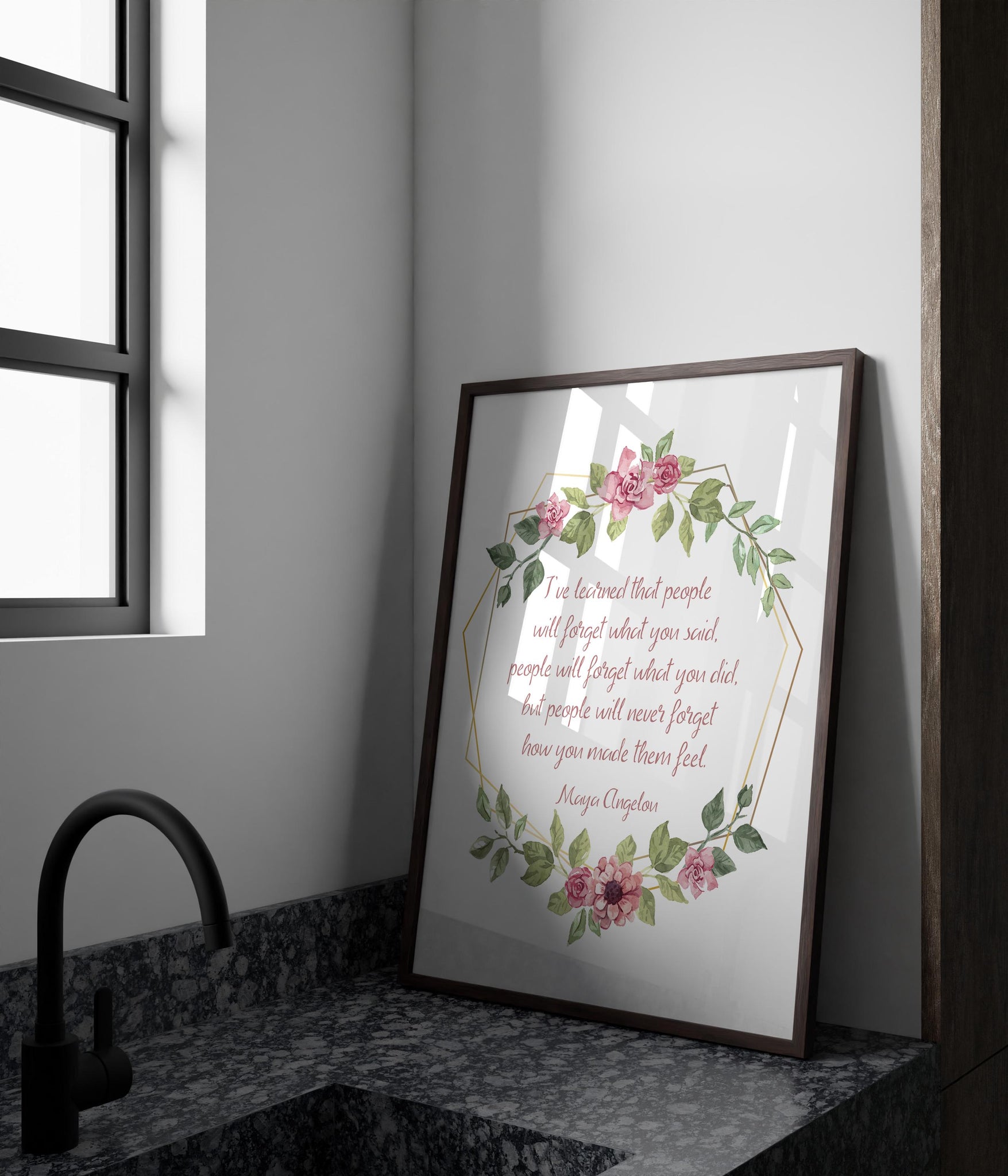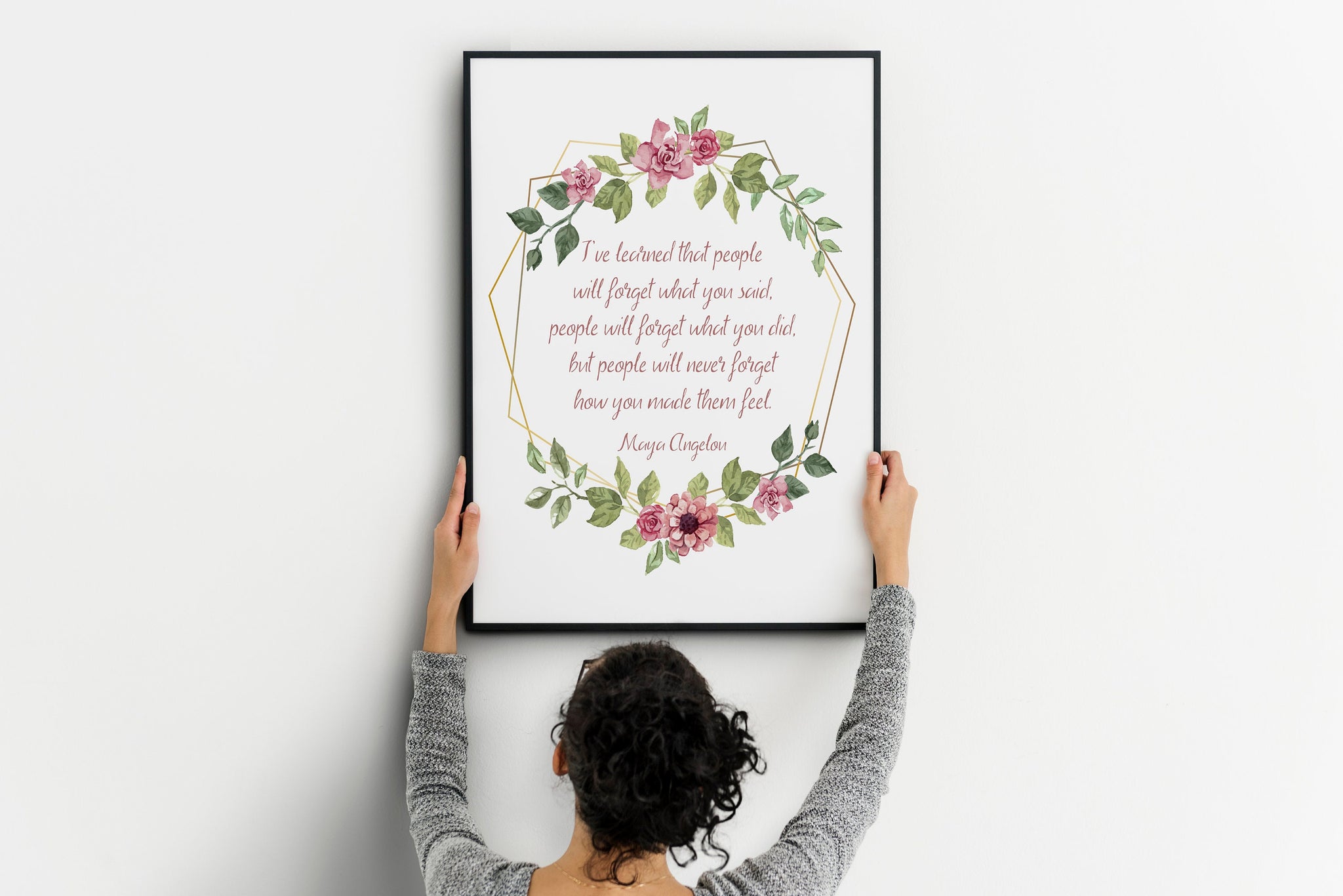 Bring timeless wisdom and beauty into your home with this elegant art print featuring Maya Angelou’s beloved quote:
