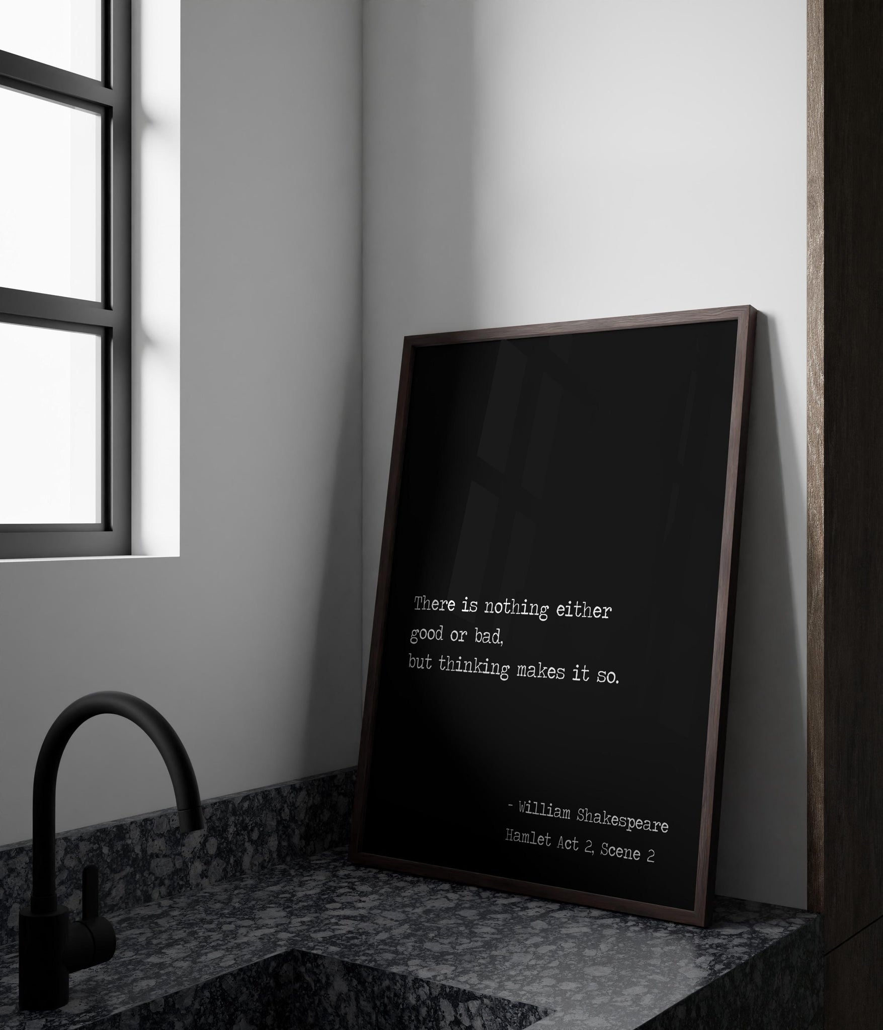A timeless black and white or vintage paper style art print featuring one of Shakespeare’s most thought-provoking lines from Hamlet: