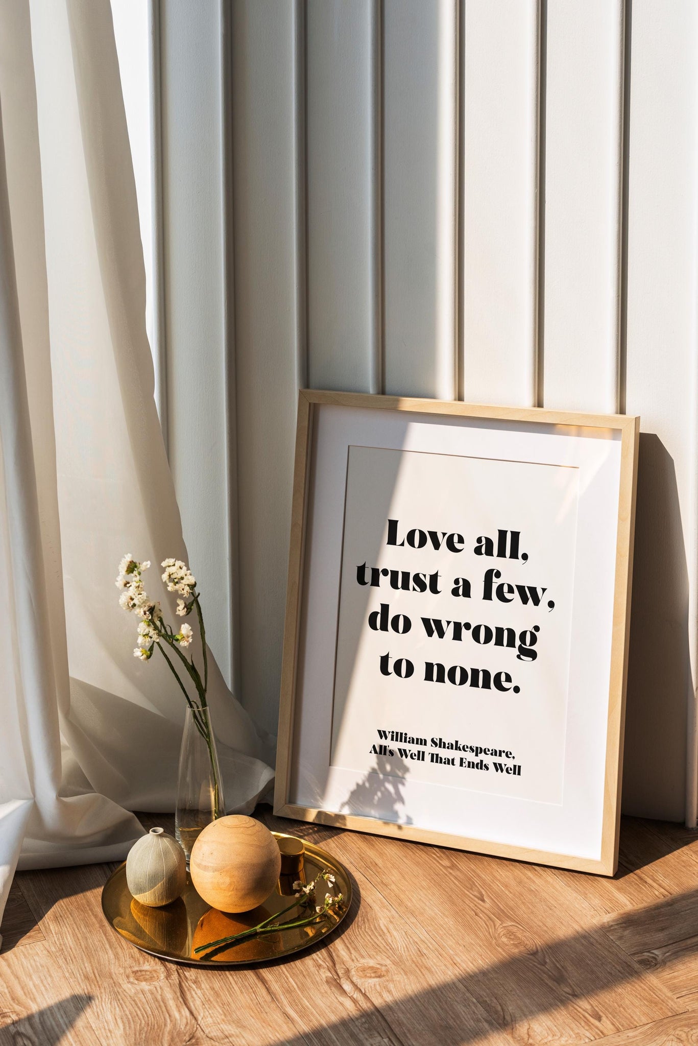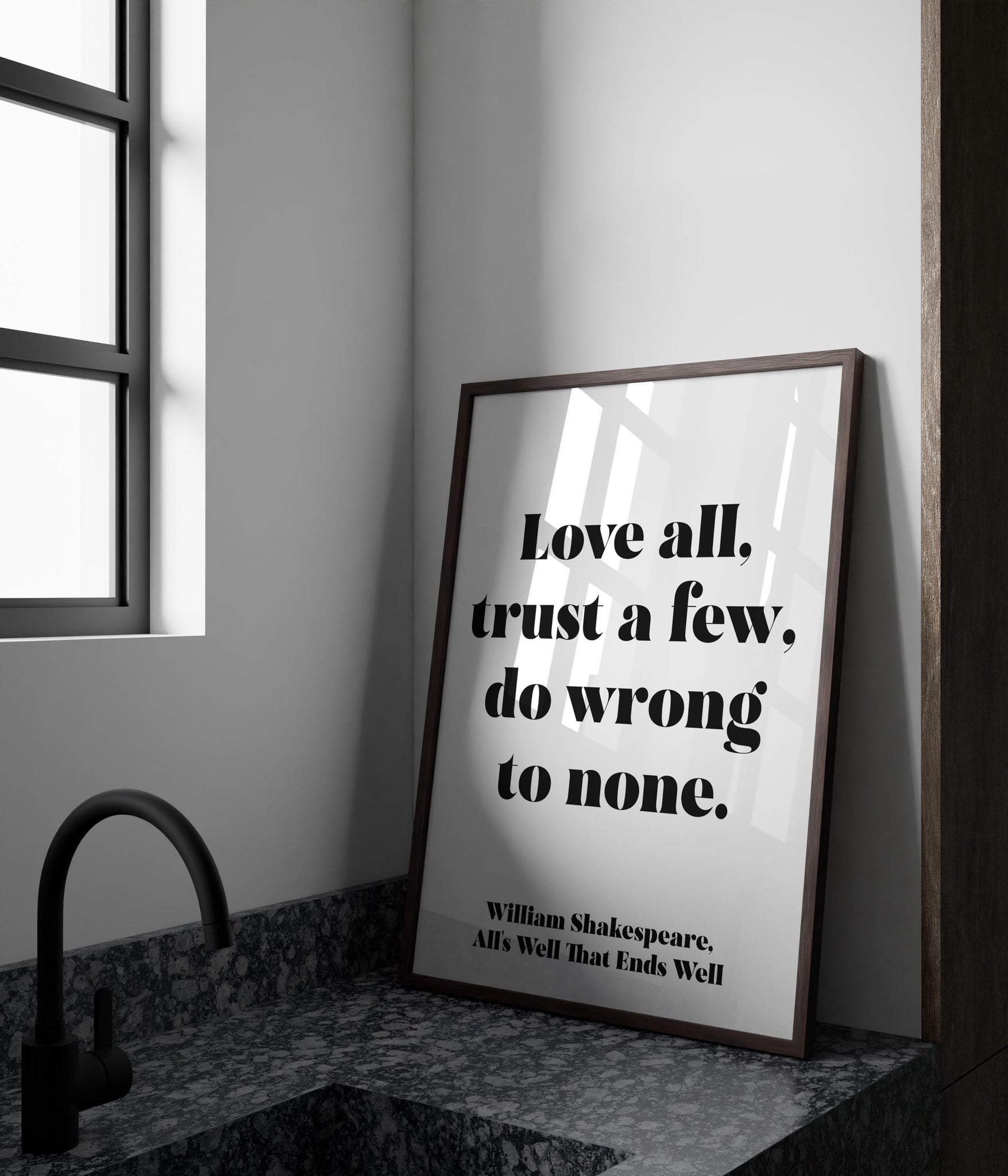 Add timeless literary wisdom to your walls with this elegant Shakespeare quote print featuring the memorable line from All’s Well That Ends Well: