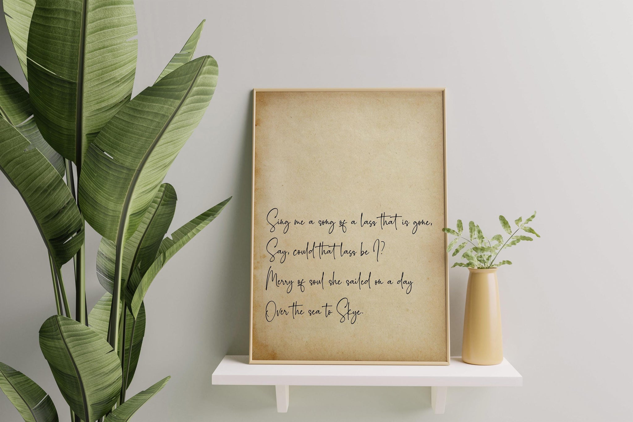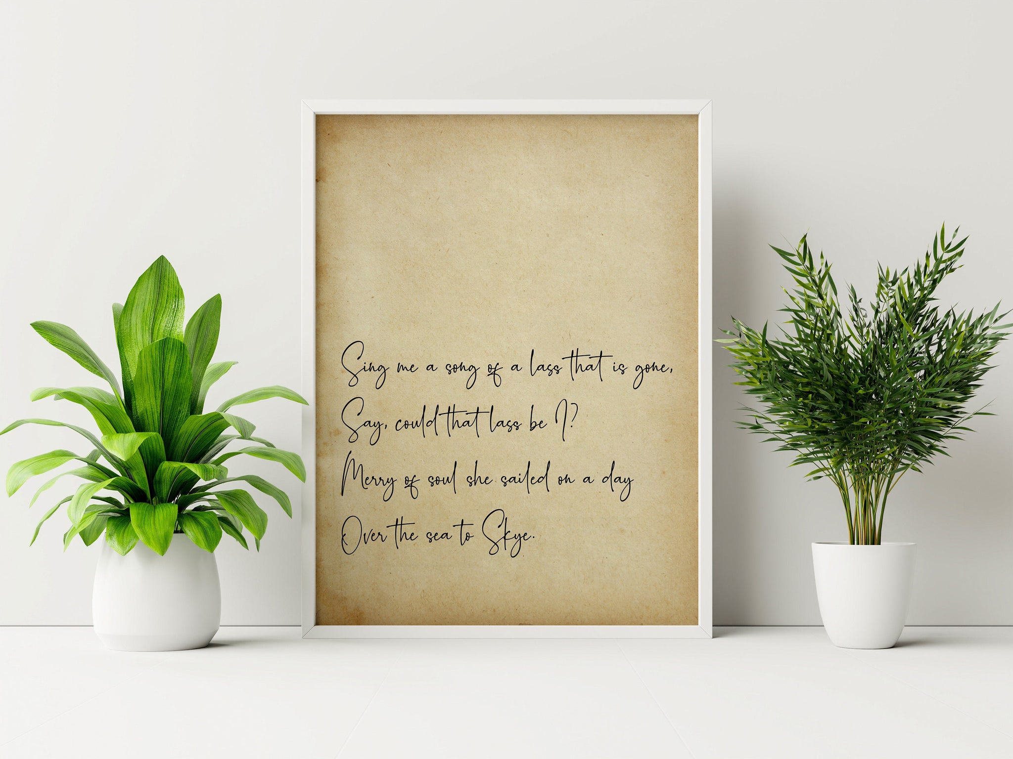 This Scottish quote wall art evokes nostalgia and serenity—ideal for anyone who feels drawn to the misty shores of Skye or finds comfort in lyrical storytelling. Whether displayed in a cozy reading nook, modern living room, or bedroom gallery wall, it adds a touch of soulful elegance and literary depth to your décor.