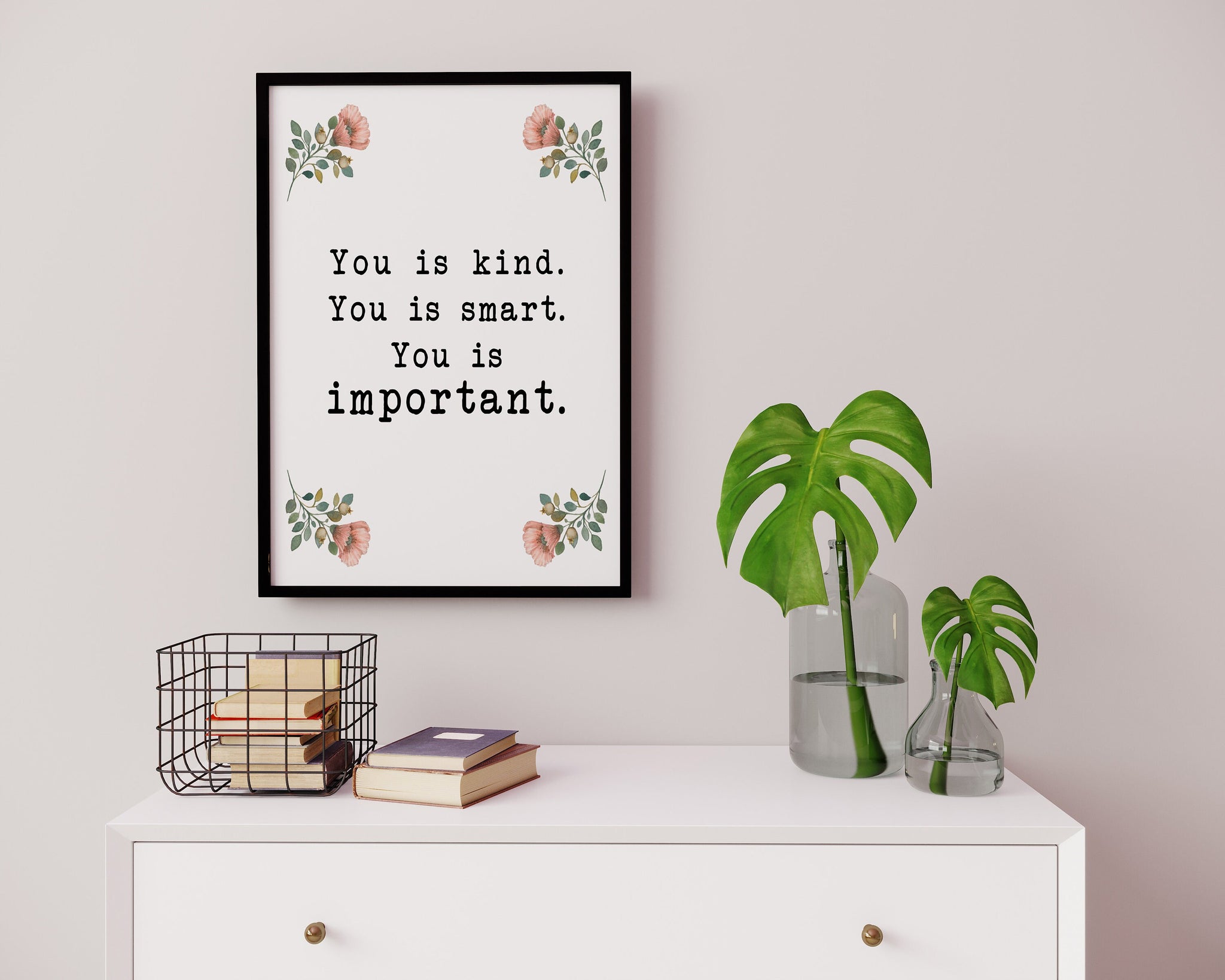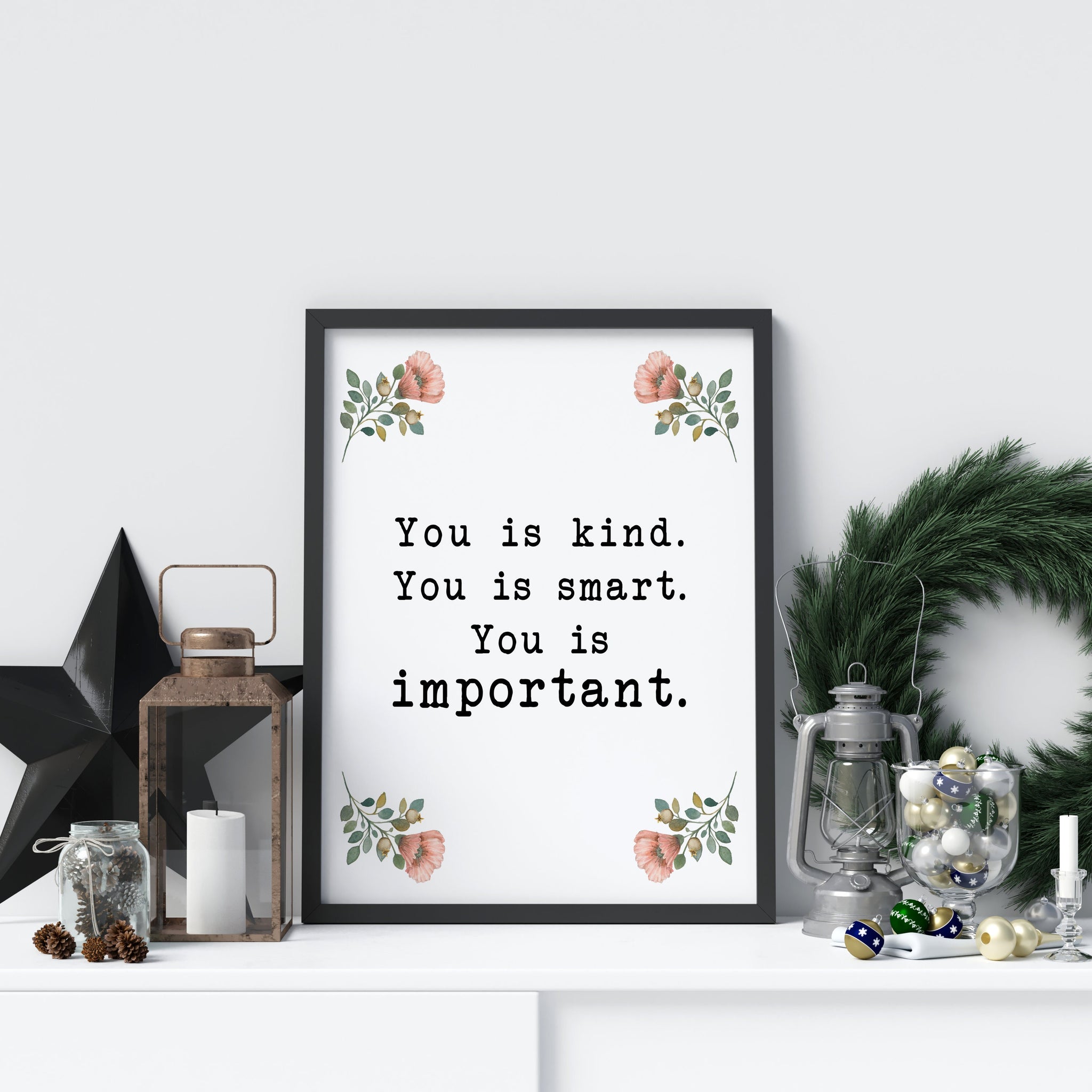 Bring encouragement and heart into your home with this You is Kind, You is Smart, You is Important print.