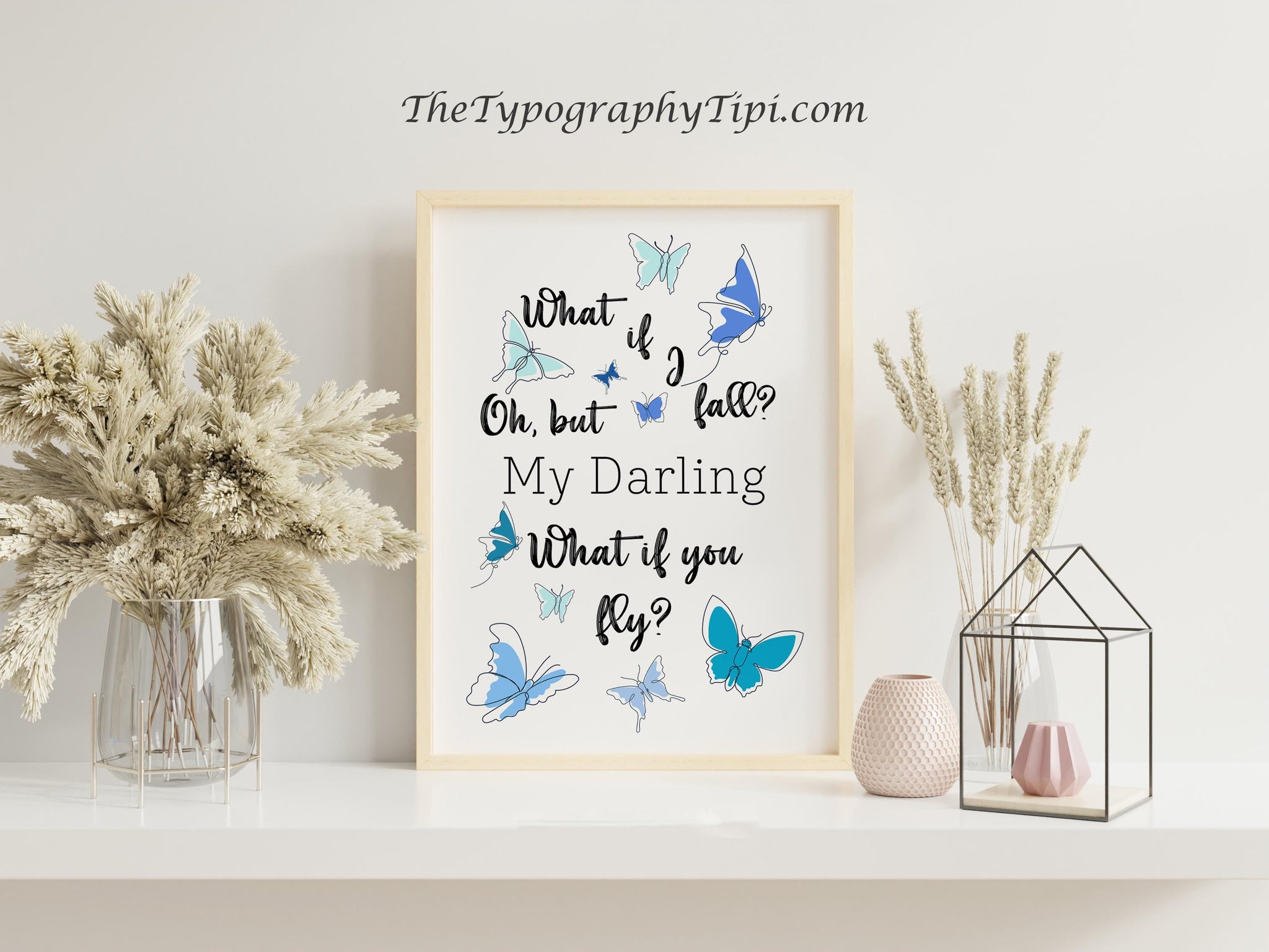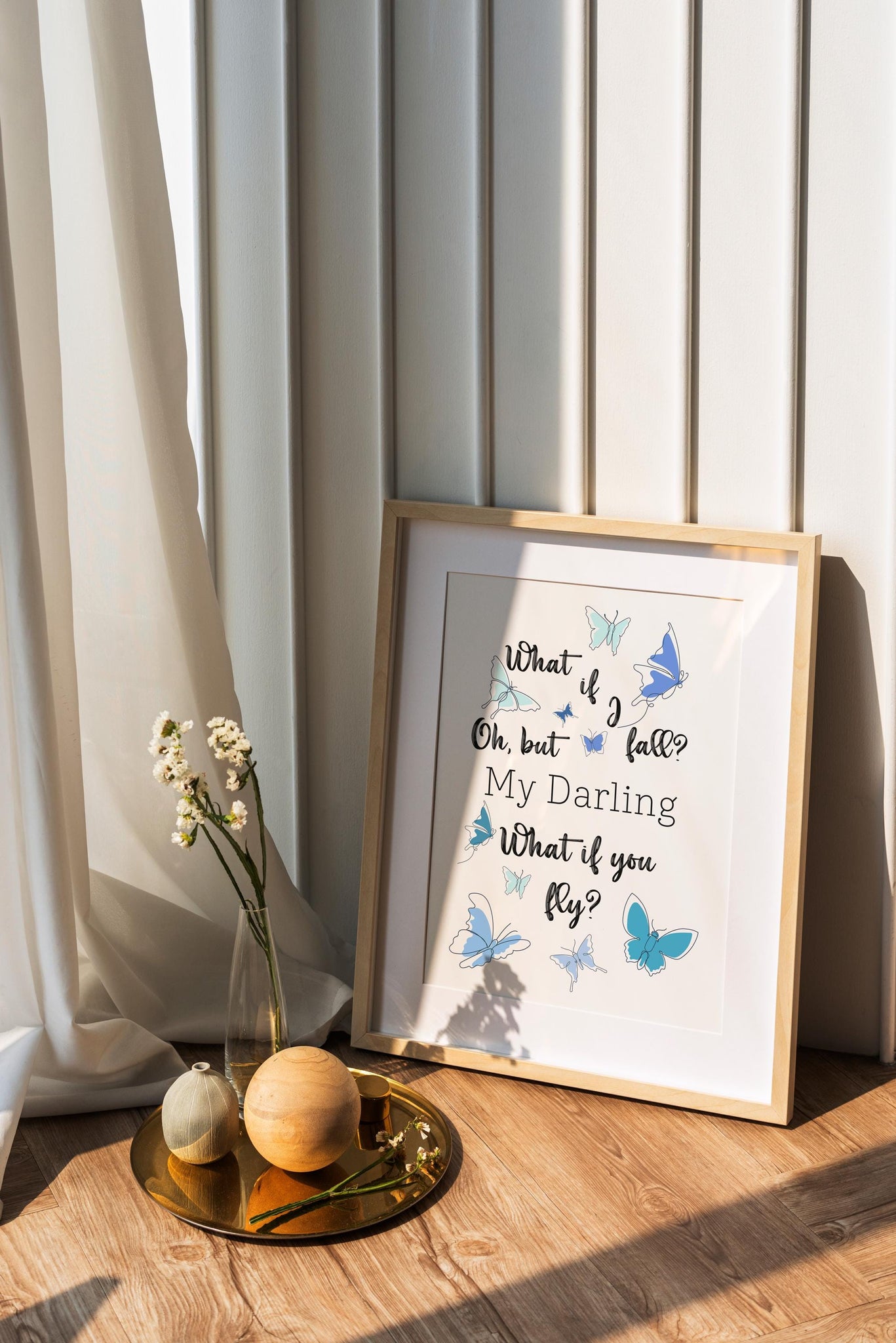 This inspirational typography print is surrounded by delicate butterflies in calming shades of blue, creating a light and hopeful design that feels both encouraging and serene. The flowing script and soft butterflies give the artwork a graceful, uplifting presence that brightens any space without overwhelming it.
